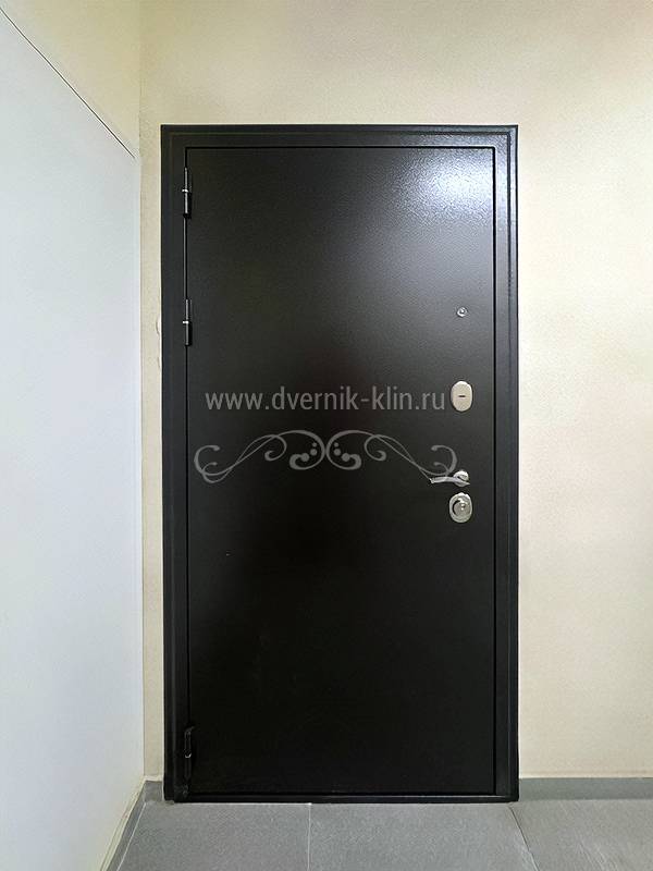Металлическая дверь с темно-серыми панелями МДФ RAL, с отбойником и биометрическим замком