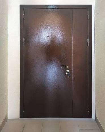 - Подъездные двери изготавливают из стальных листов толщиной от 1,5 мм и профильных труб;
