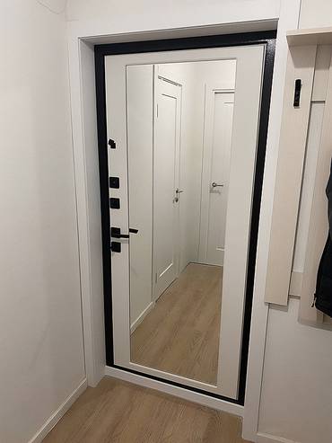 Металлическая дверь в квартиру с зеркалом внутри не уступает по прочности стандартным металлоконструкциям: